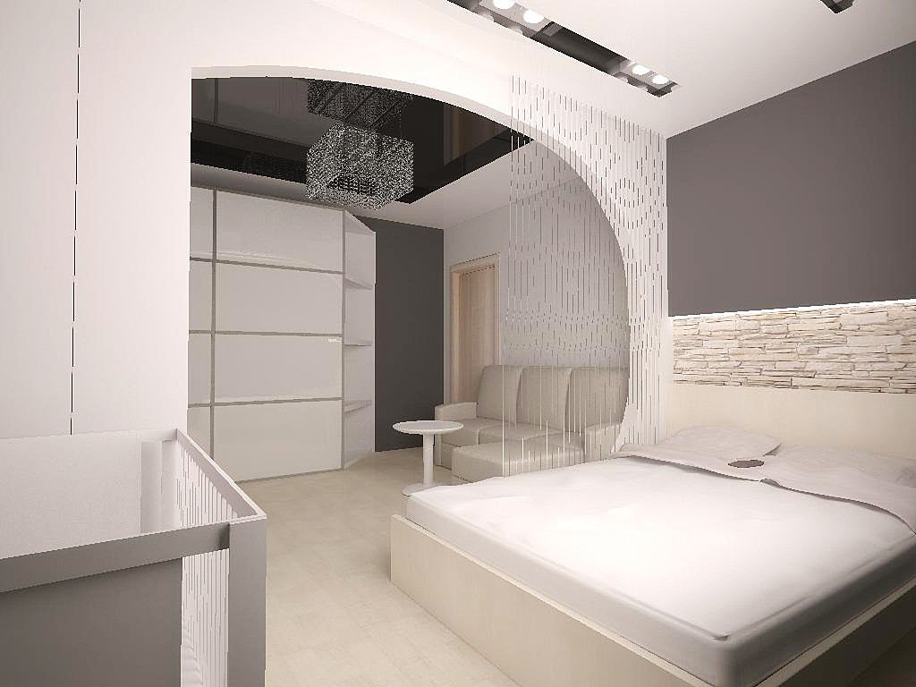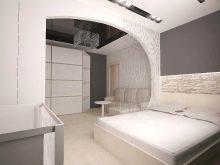 The arch leading to the sleeping areaIt looks good in a classic interior - it gives chic to a dwelling and does not clutter up space too much, does not take light, and in general looks luxurious.