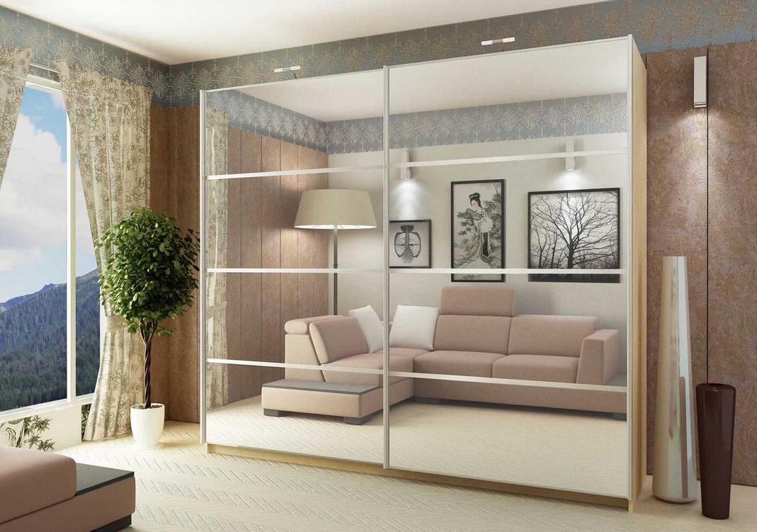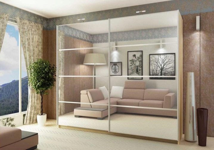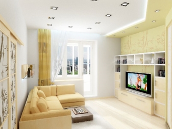 Dressers, wardrobes, massive tables and closed shelves leave for the corridor or replace them with a wardrobe that can be placed in the same niche of the corridor (if there is one) or along a small wall in the bedroom-living room.The interior of the room with a wardrobe will look good, if it is mirrored or glossy - this will create additional visual space.