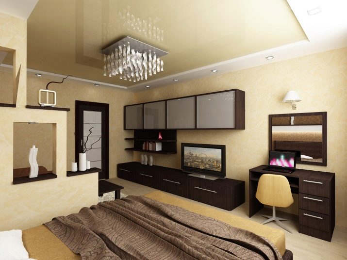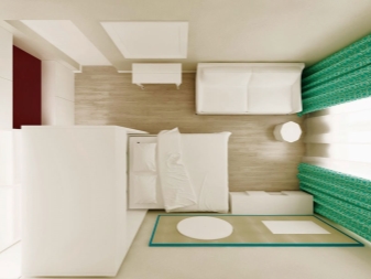 The living room combined with the bedroom usually takes up more space. If the room is 19 square meters. meters, then for the recreation area you can give about 2/3 of space and place the bed away from the entrance to the room - by the window.