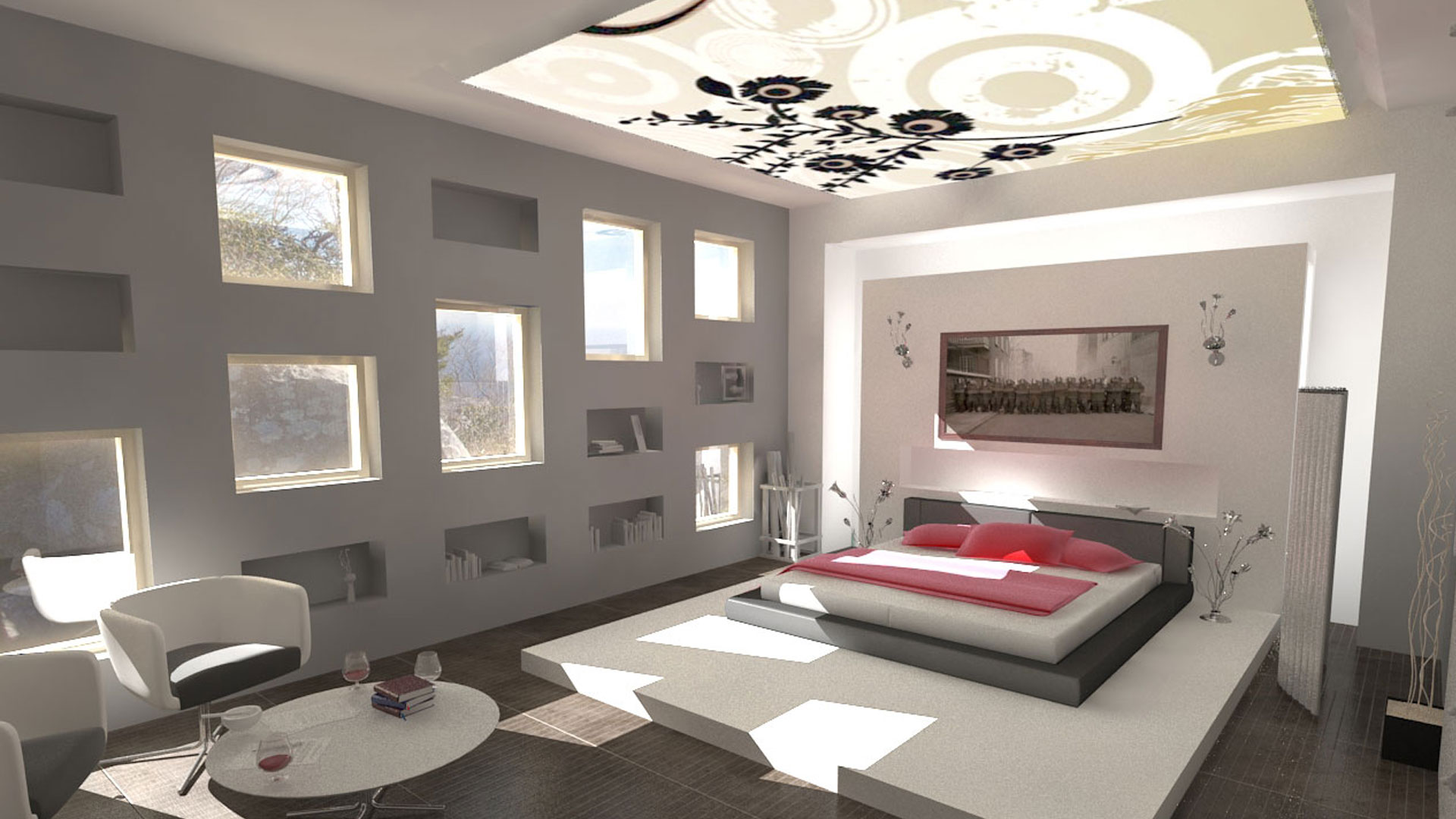 If the ceiling in the bedroom is low, the following techniques will help to visually make it high:
