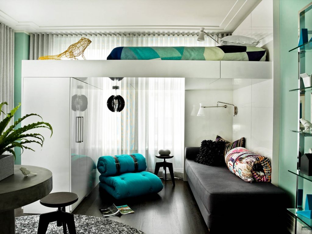 - Choose furniture transformerif you do not like to clutter up the space. An ordinary wardrobe or sofa in the evening turns into a double bed;