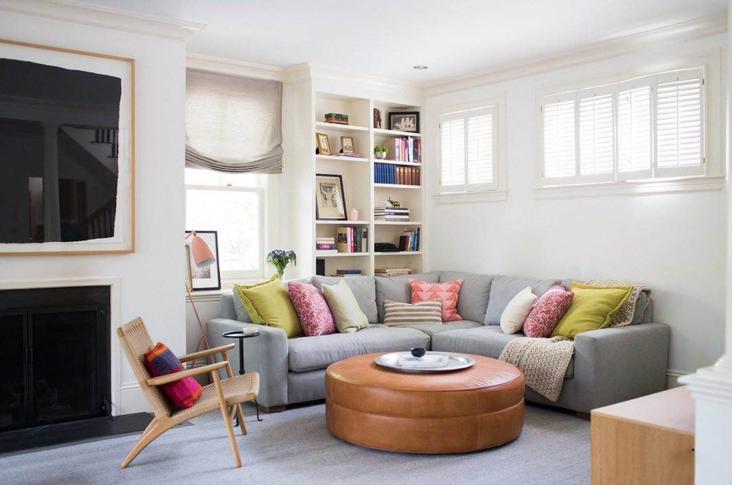 - To have a sofa and armchairs in one room - means littering it. Prefer compact soft poufs and offer them to friends (who do not fit on the couch). When there is no one at a party, frameless furniture can be stored on the balcony.