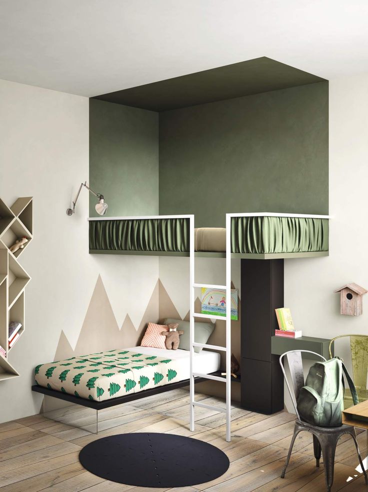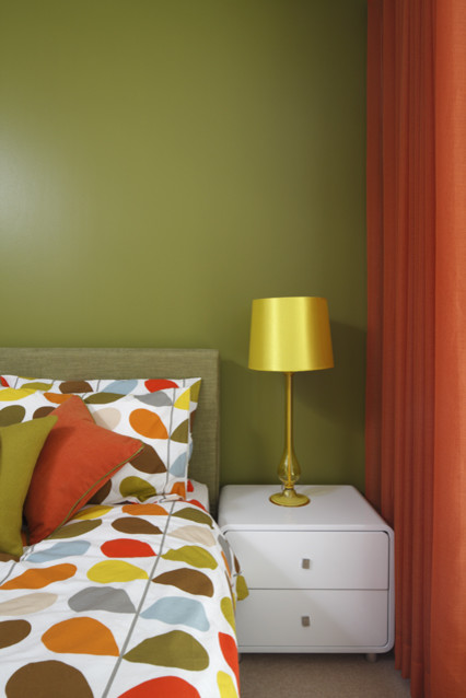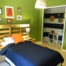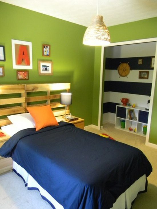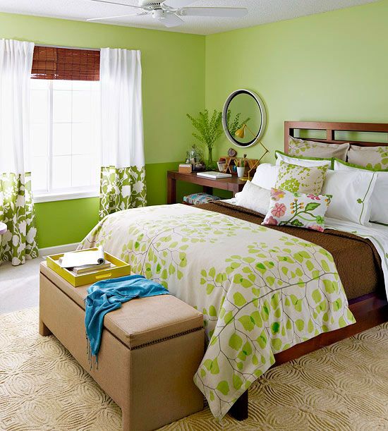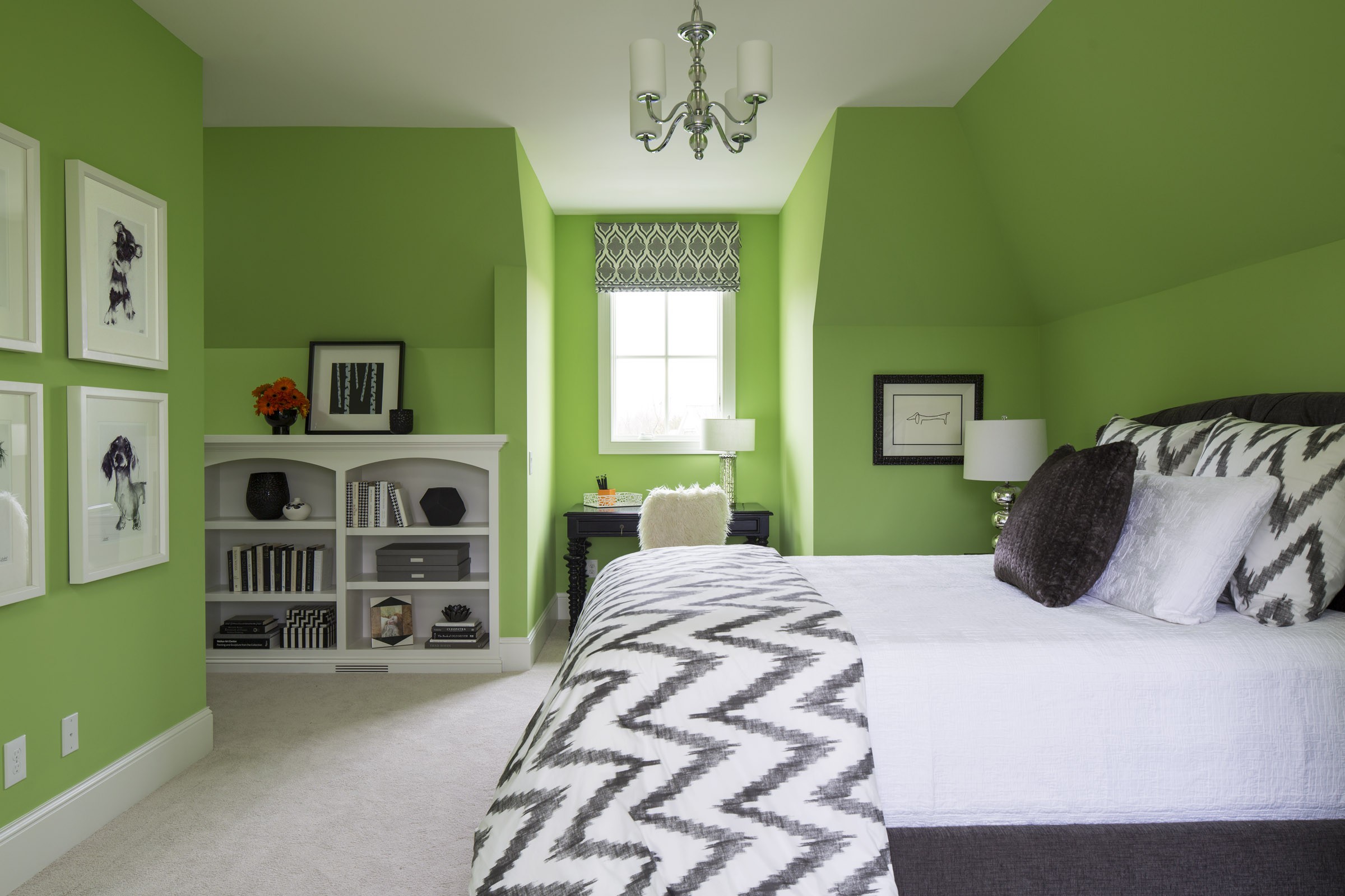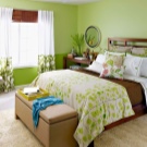 - Youth style. Young people always pay special attention to their bedroom, which should emit light and peace. Fresh green will be perfectly combined with bright red, snow white or dark blue. A bedroom decorated in a youth style will surely be interesting and memorable.