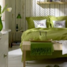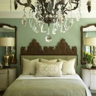 To create the most harmonious and stylish interior, you must pay special attention to the choice of furniture. For the bedroom, decorated in green color, the ideal choice would be wooden furniture, regardless of its color. In addition, you can buy furniture decorated with wooden inserts: in terms of attractiveness, it is not inferior to natural, but at a price cheaper.