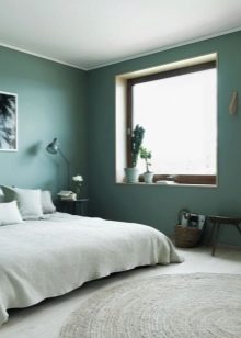In the process of making a bedroom in green tones it is best to refuse to use gloss or any objects with such a surface, since the shiny elements in such a room are not very appropriate. In order for the lighting to be as natural as possible and not to spoil the appearance of the room, it is necessary to strictly observe the balance between bright and dark shades. It should not be forgotten thatAnaves, bedspreads and curtains are the main sources of color in the room. To transform a room, it is sometimes sufficient to simply replace these elements.