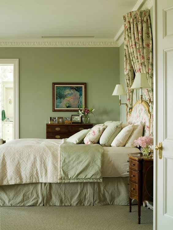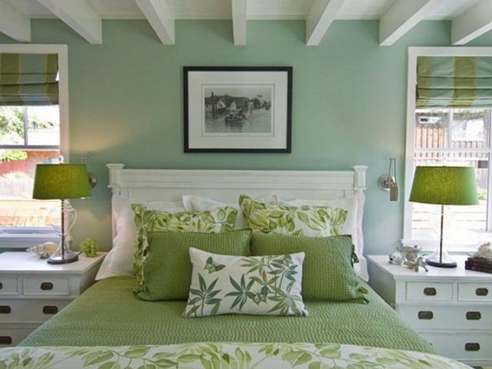 Many psychologists believe that this color has a beneficial effect on the moral state of a person, allowing him to feel much better, get rid of problems and relax after a hard day’s work. That is why the green color is ideal for the bedroom, because the sleep here will be strong and calm.