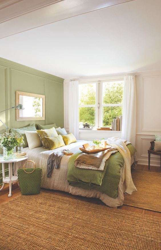 Bedroom decoration in green is one of the most popular design solutions.The presence of a large number of shades allows each person to choose the most suitable option. Yellow, brown, and beige are perfectly combined with green.