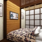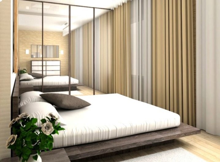 Low ceilings, too, can not stop you in an effort to make the room more spacious.Just when choosing a bed give preference to lower models, for example, in the Japanese style. So you artificially raise the ceiling without resorting to the services of architects and builders. And this will make the bedroom even lighter and bigger.