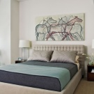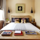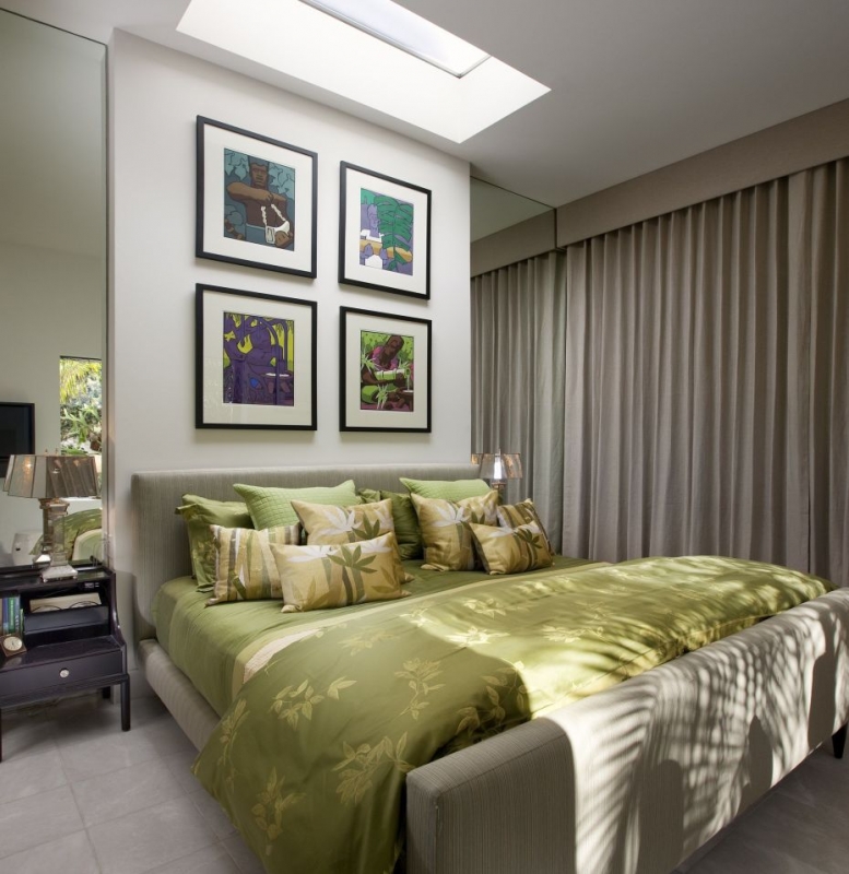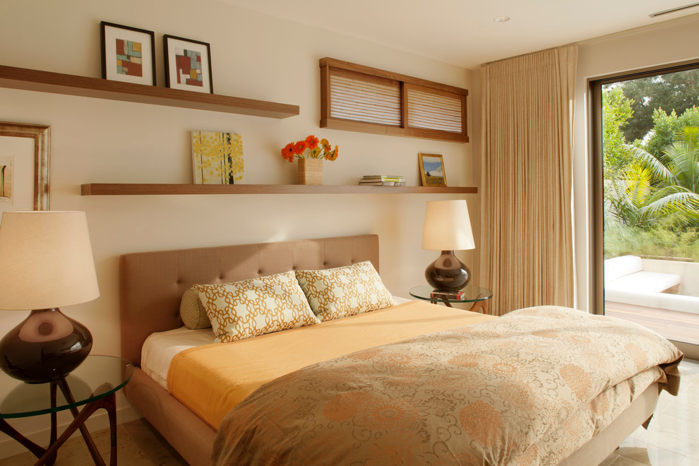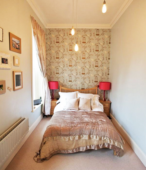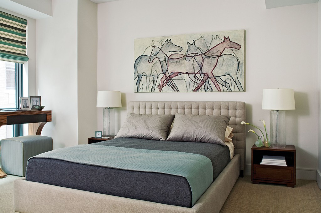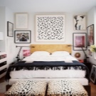 Of course, we do not force you to abandon your favorite paintings, posters or large photos, but urge you to place them correctly. After hanging a large image at the head of the bed, you can make it a focal center that distracts attention from the small area of the room itself.
