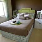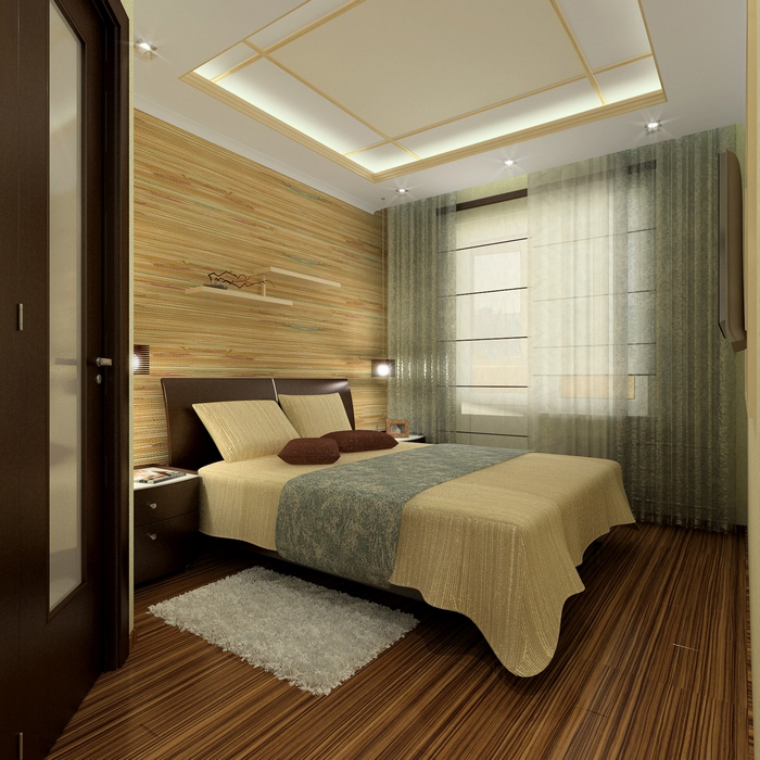 Do not forget that not only walls play a special role in the color scheme of small bedrooms. Floor and ceiling are important too. Therefore, give preference to the same colors that you chose for the walls. So you can remove a sharp transition and a pressing feeling (it is especially felt in rooms with low ceilings).