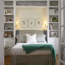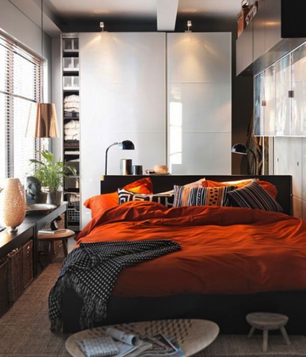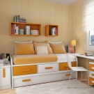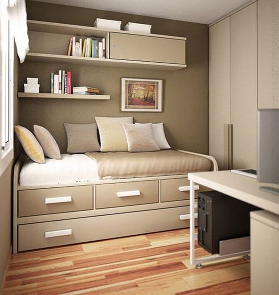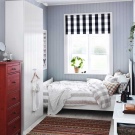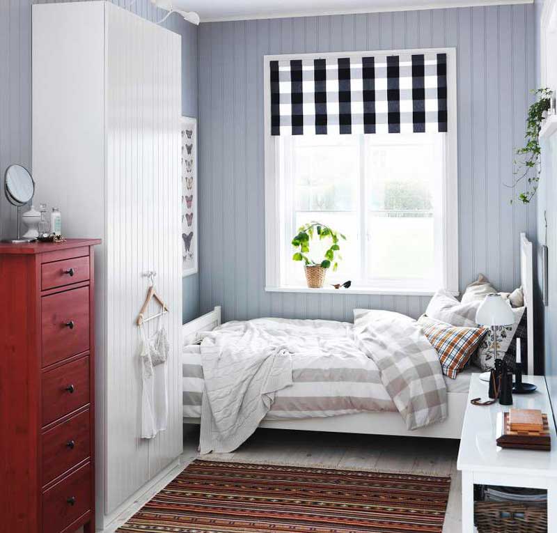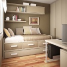 - the only bulky piece of furniture permissible in a small bedroom is a bed. But do not forget that it can also be multifunctional, which will reduce the number of cabinets, chest of drawers and shelves.