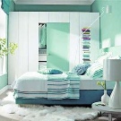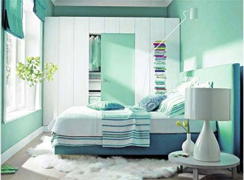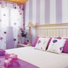 Bright and bold shades will give the room not less space and light. And the use of combined wallpaper, where one wall will be executed in turquoise or blue, for example, tones, while others in more subdued shades will also expand the space and give a healthy pleasant sleep.The main thing - the right combination of colors and their location. For example, a great solution would be to trim the panel above the bed with large-sized wallpaper or a bright print, and in addition to them, pick up plain-colored companions to give the interior a dynamic look.