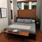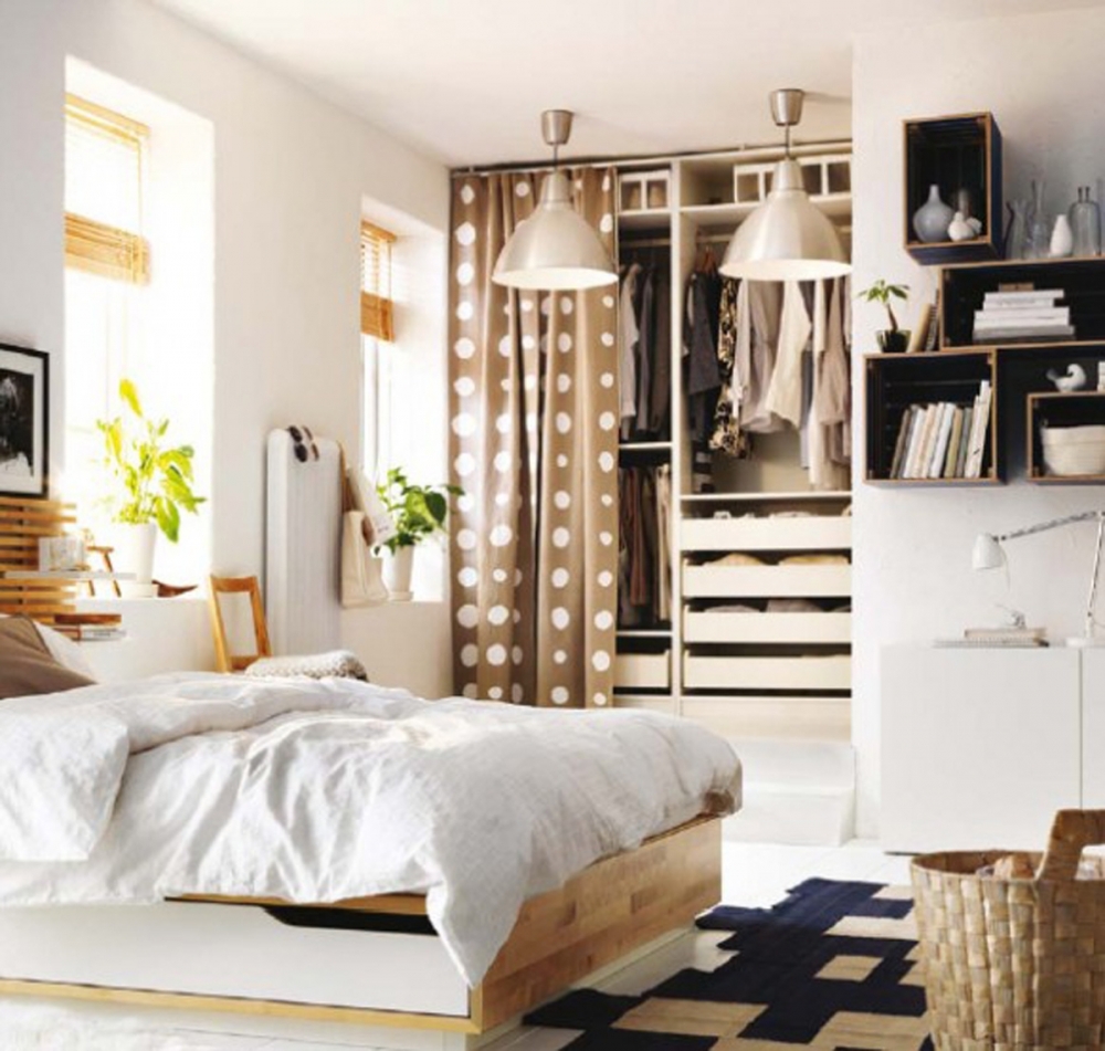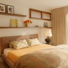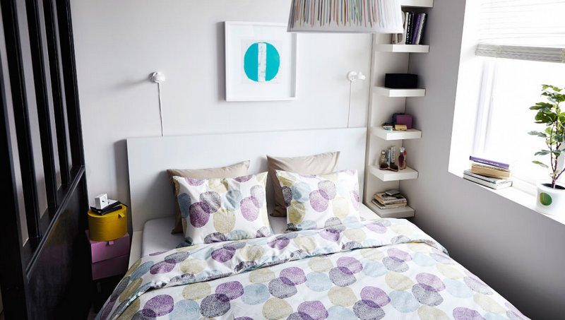 And the space freed up against the wall can be used more profitably by taking it in a mirrored wardrobe, shelving or other successful storage system that is so essential in small apartments.By the way, we repeated more than once, but we recall again that their number is also easily reduced due to a competent approach to the choice of a bed. When buying a main bedroom furniture should give preference to drawers or lifting mechanisms, which will reduce the number of shelves needed to accommodate bedding or off-season things.