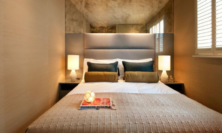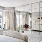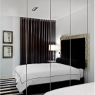 Another tricky move, obligatory to use in small bedrooms, is the use of mirrors in the design of individual sections and even entire walls. After all, they do an excellent job with the main task that we are facing: they visually expand the boundaries and increase the available space. And it doesn't matter what you choose - a separate large mirror, mirrored panels on the sides of the bed, or a whole headboard - any of these solutions will put the room in a winning light.