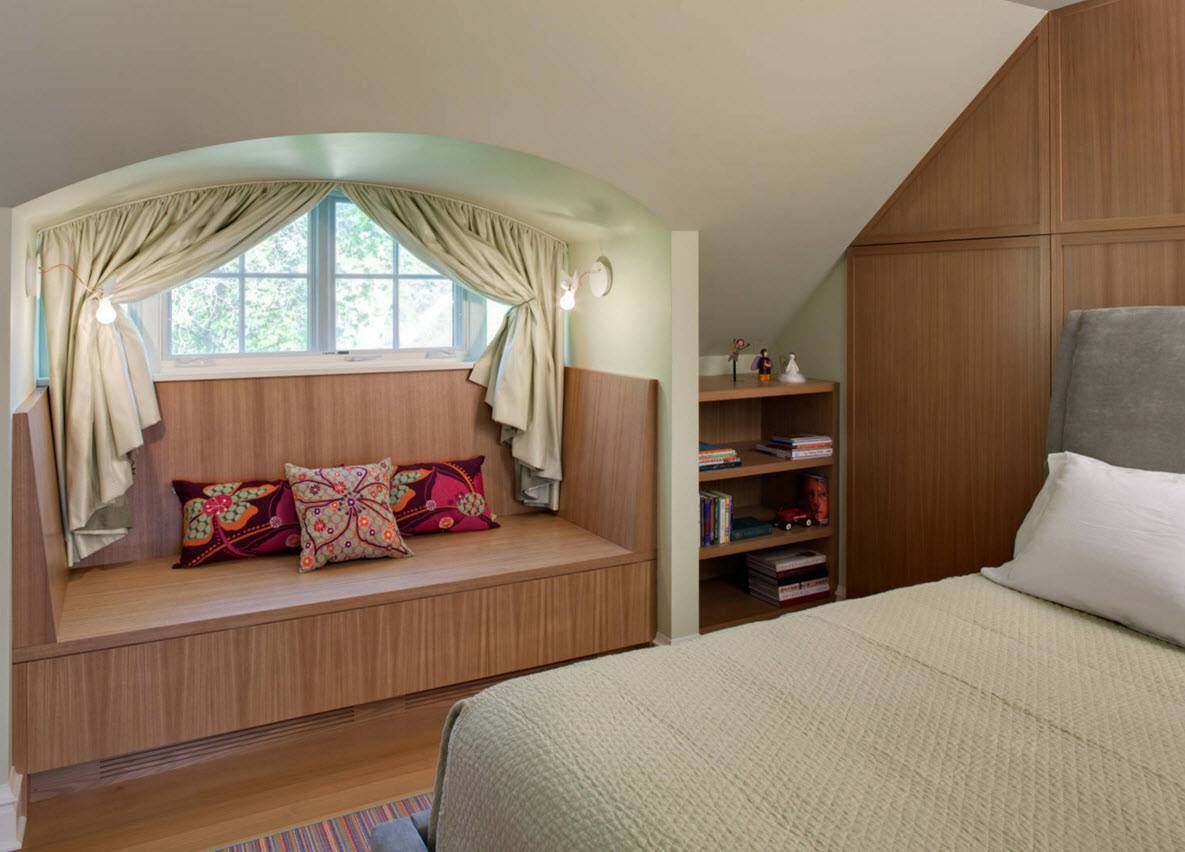 Therefore, it is necessary to furnish such a room not just organically and beautifully, but also functionally, so that the writing desk does not stand out from the overall picture of the bedroom, and the bed does not seem to be a superfluous piece of furniture forgotten by the former owners.