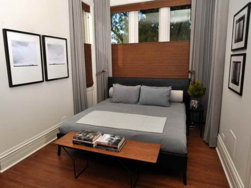 The main rule in the arrangement of small-sized bedrooms is the principle of splitting. After all, the more the room is made, the closer it will be. And if you look at the walls and the floor in your bedroom, you have not seen a single empty seat or plinth, then you will never feel comfortable in such a room.