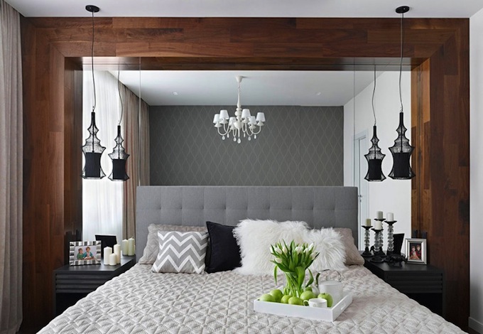 If we have convinced you that only light or bright colors will create enough room and comfort in the room, then we hasten to retire with a proposal to paint the walls with something darker. After all, a bedroom in gray tones will not yield to a visual increase in the space of light rooms, but rather, will put it in a more advantageous light.
