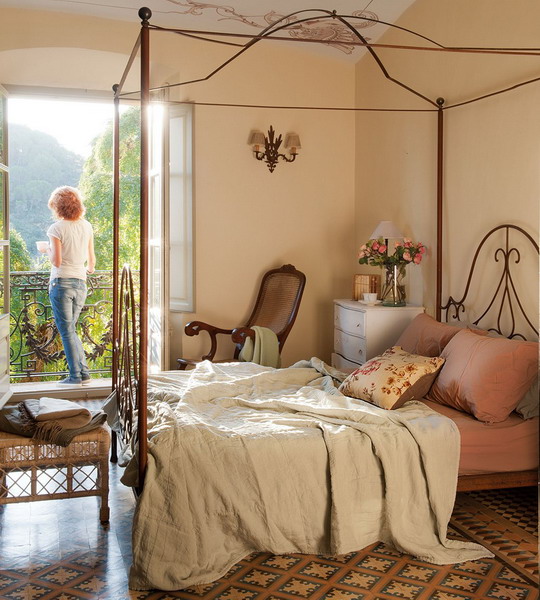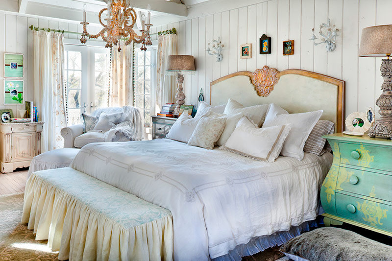 Although white color blows not only open space, but also coolness, therefore many try to abandon it for the sake of greater comfort that has come to us from the West. So, a bedroom decorated in a rustic style or a chebbi-chic, made in soft pastel colors and complemented by small scuffs or, at first glance, bulky furniture, makes the room more warm and pleasant for people with a subtle mental attitude.