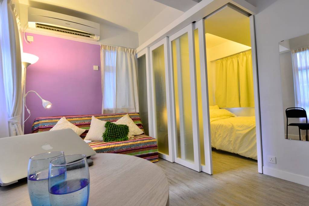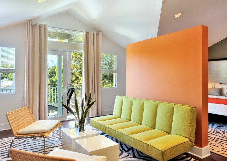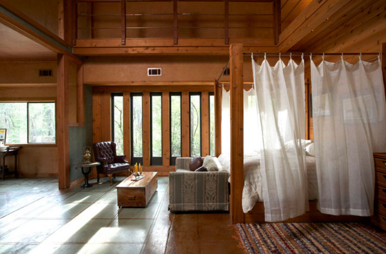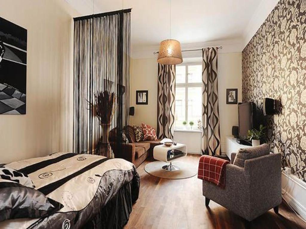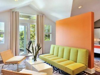 It is best to zone a room with a restrictive barrier. For example, the well-known method for all is a partition that, if desired, will hide the intimate part of the room from prying eyes.