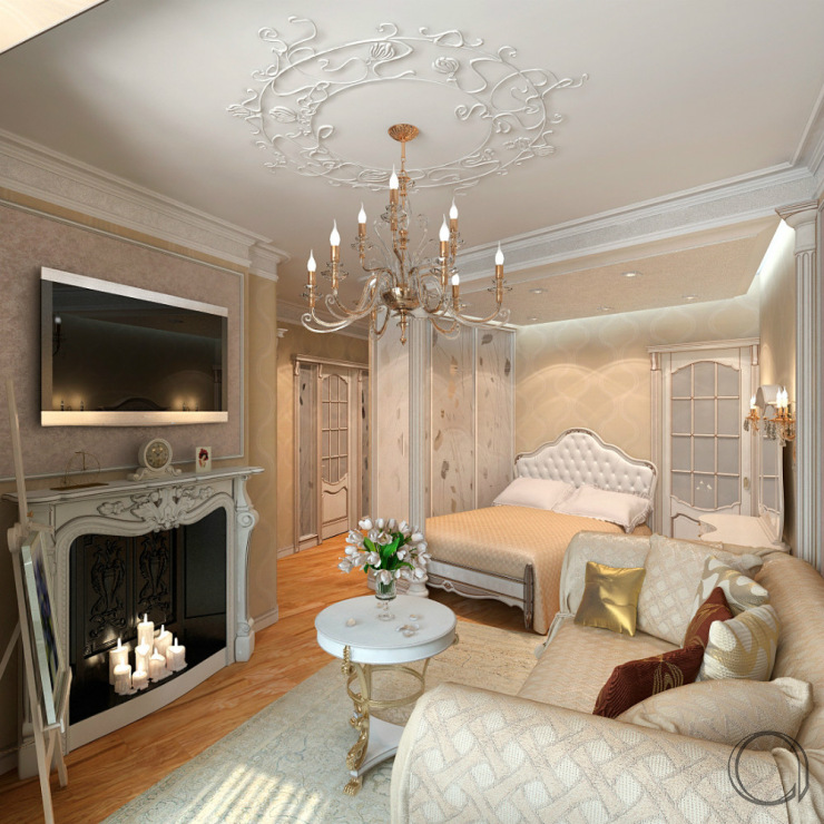 - Classic style will help to express the conservative views and rigor of apartment owners. Light shades, clear lines and a minimum of bright accents should prevail here. Only natural materials should be used for the decoration of the room, but artificial materials can also be bought if they visually look very expensive. Classic appreciates wood, leather, natural fabric and stone. And with the help of carving on wooden products and gold painting you can achieve a sense of luxury inindoors.