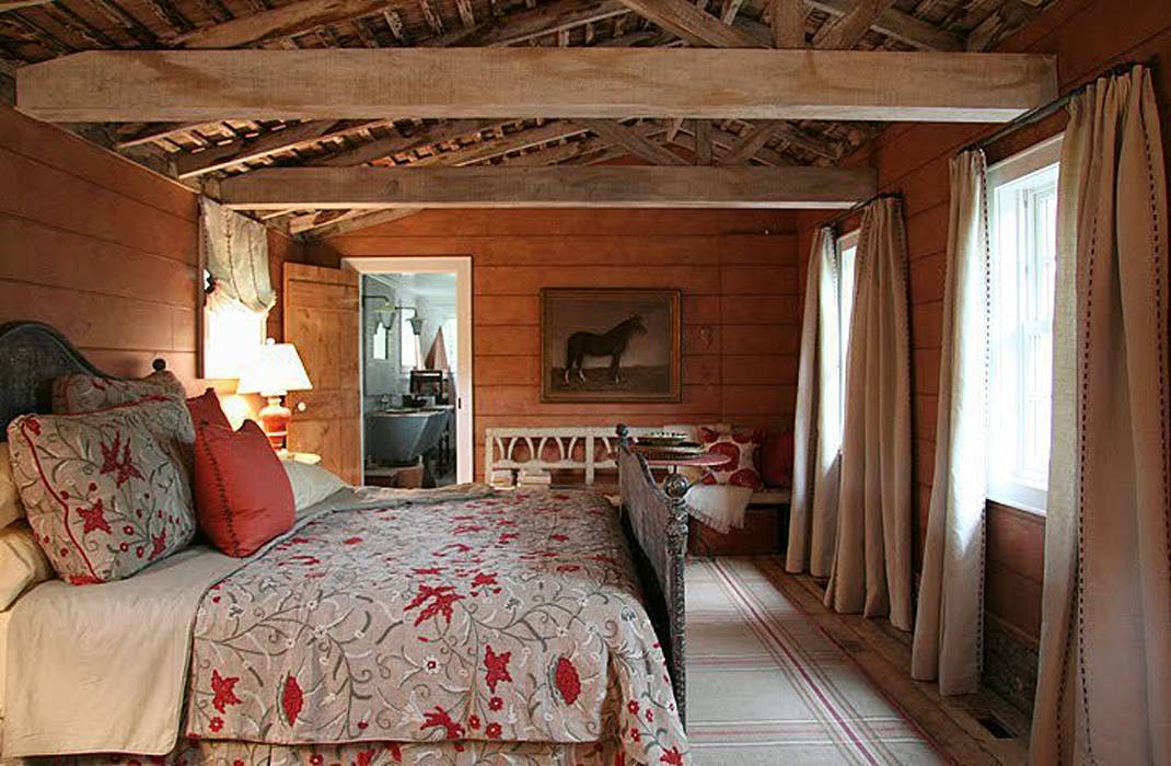 - Country music helps to create a feeling of rural life indoors. Therefore, the design of the living room-bedroom should be as simple as possible: a cell on textiles, photo frames, wooden furniture and ceramics. And so that it seemed that the tenants are in a village house, you need to pick wallpaper that mimic the bars and lay parquet on the floor.