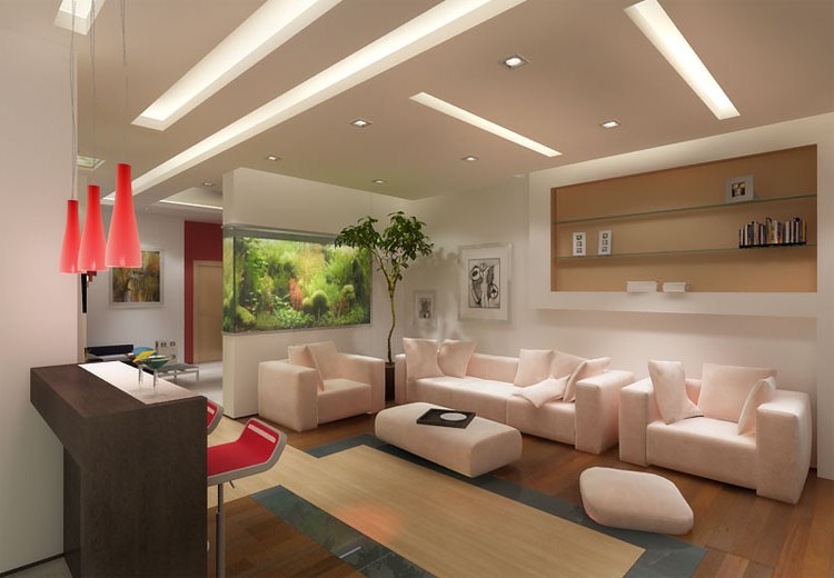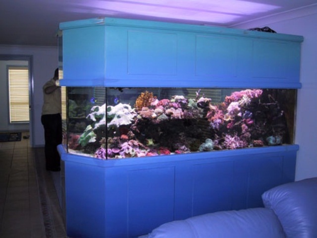 Split the room can and a huge aquarium, which will add to the interior of the mystery of the sea depths. Especially beautiful it will look in combination with blue shades in the design of the room.