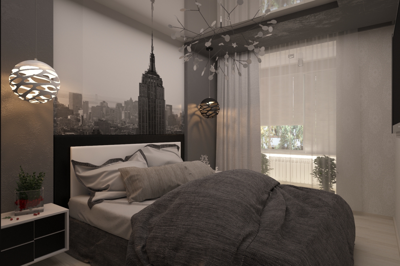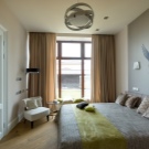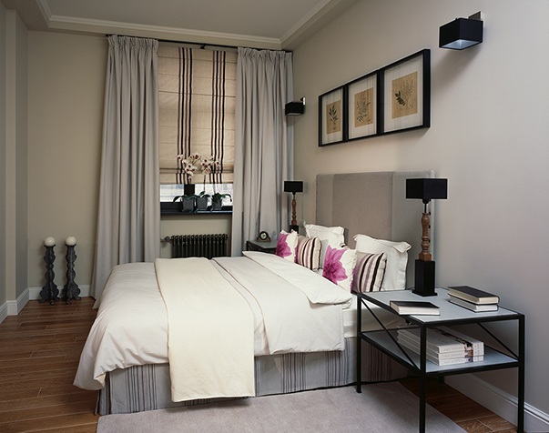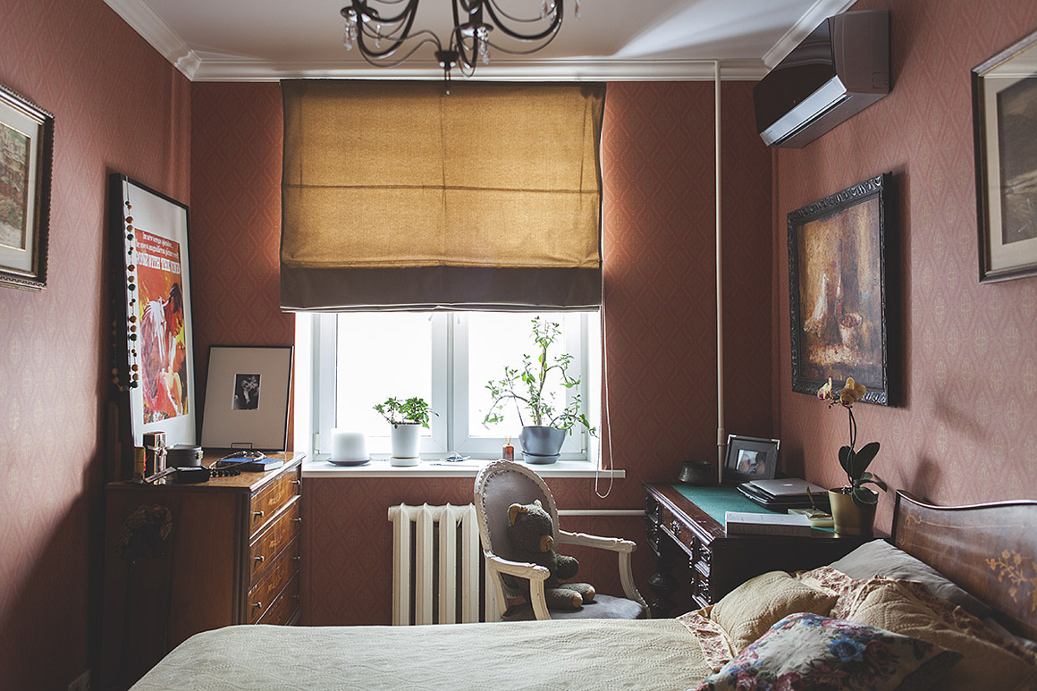 Get rid of the cast iron radiator. Of course, at the moment there are no equivalents in quality to good old cast iron, but modern thin batteries look much smaller and sleeker.To the bedroom was warm enough, build underfloor heating.