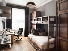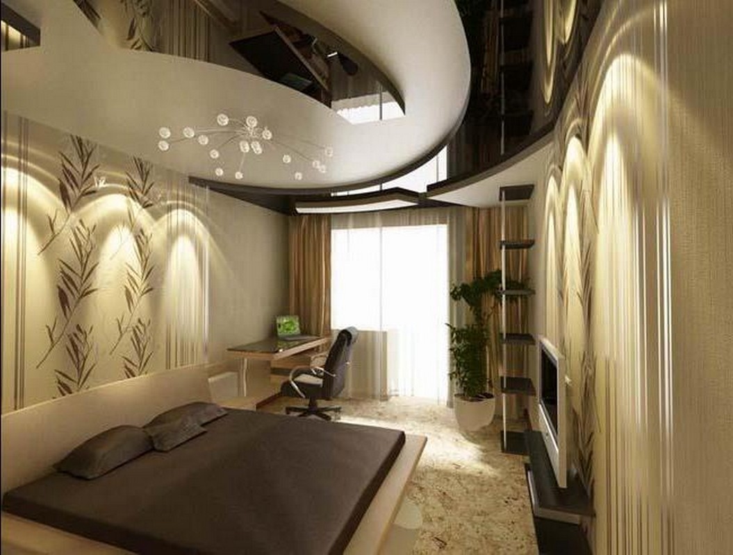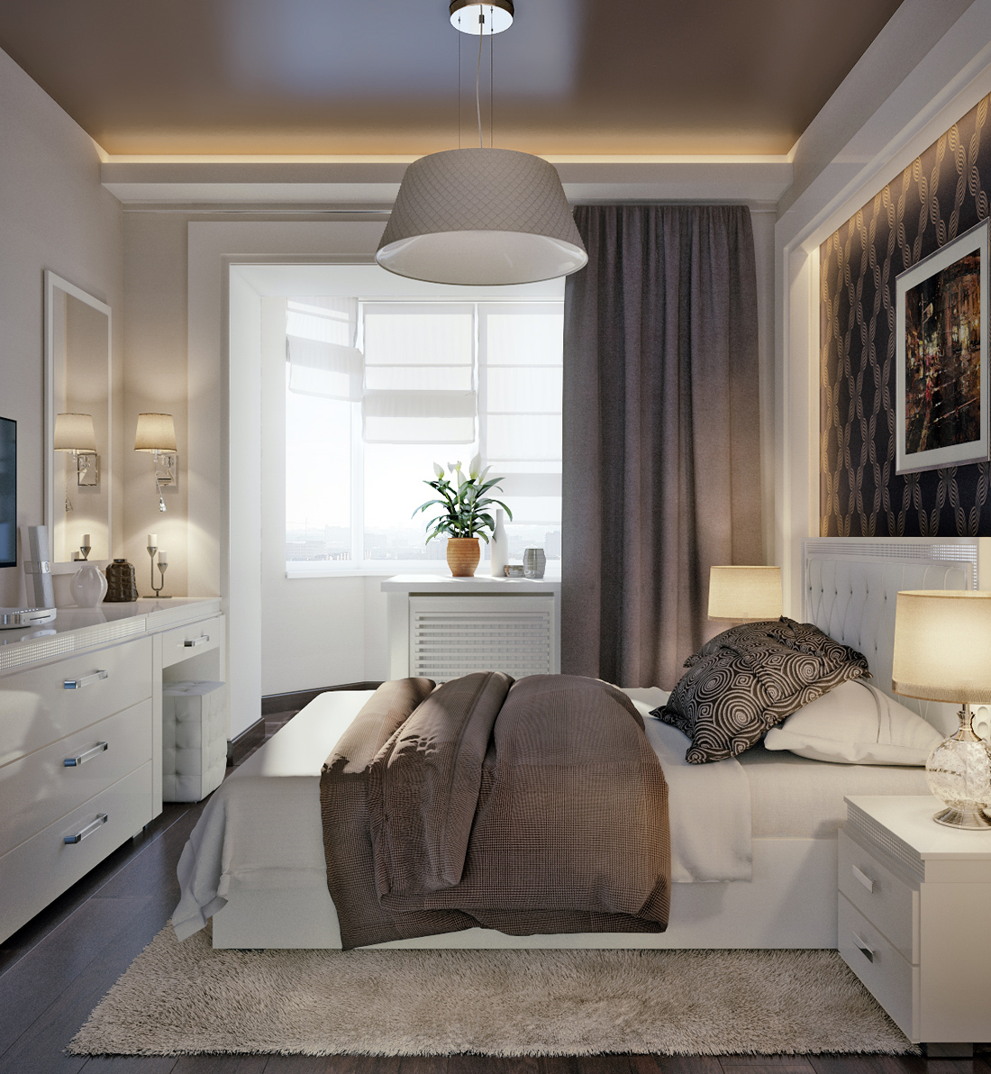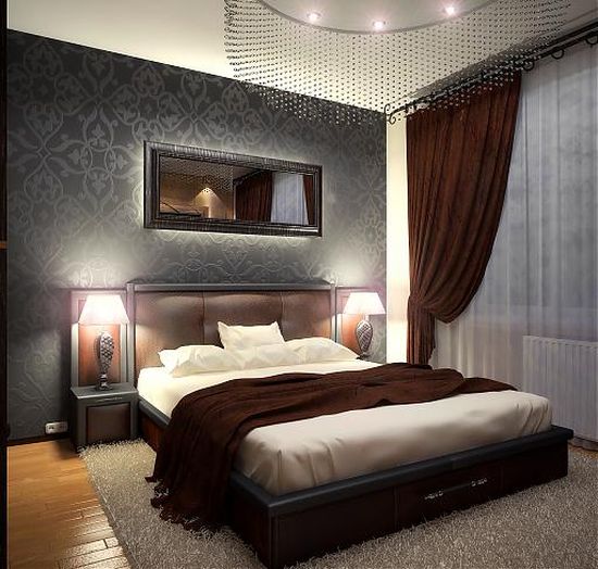 Dark colors are a bad choice for a small bedroom. Because of the low ceiling, it will be extremely uncomfortable to be in such a room, it will give the impression that you are not in the bedroom, but in a closet or in the attic. Such an atmosphere can lead to problems with the psyche, depressed states, depression.