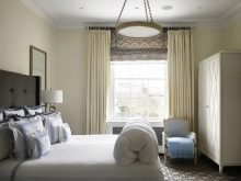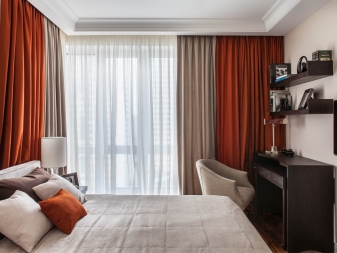When choosing curtains Prefer models with a lifting mechanism, such as blinds, Australian curtains, etc. Just leave the window without a frame is not necessary, since the interior of the bedroom in this case will seem unfinished.