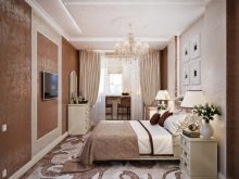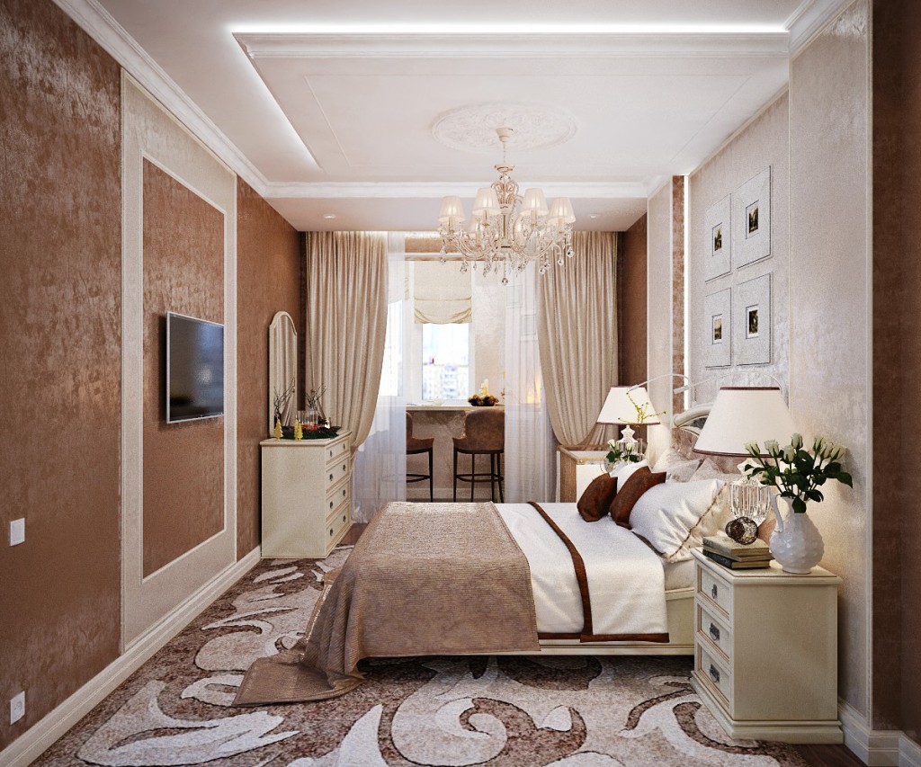- Styles like Baroque, Rococo, Art Deco, strict classical cardinally are not suitable for the design of bedrooms in the house of Khrushchev construction. The abundance of parts, heavy bulky finishing materials, ornate furniture can create not a luxurious atmosphere, but cluttered up.