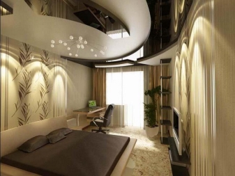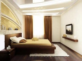 Additionally, in the rectangular bedroom you can buy a carpet or hanging shelves. Designers are not advised to fill the room with an abundance of small items, as it may seem cluttered due to its small size.In addition, cleaning with such interior decoration will be longer and tiring.