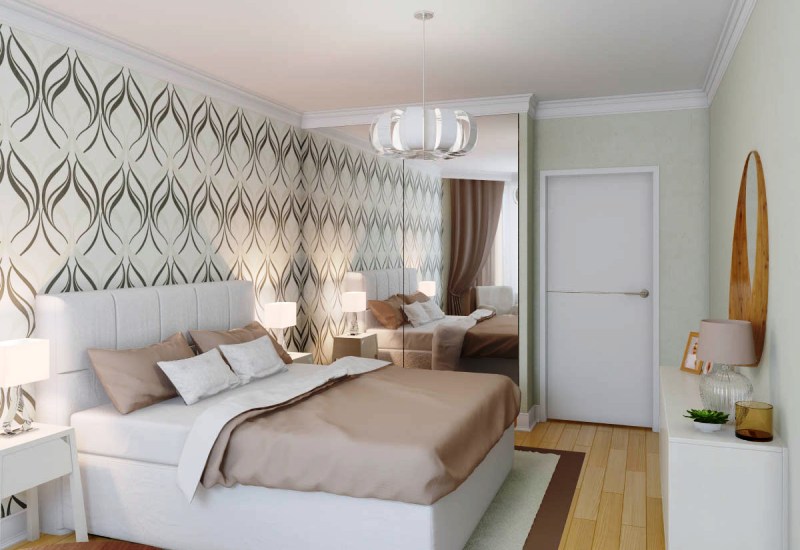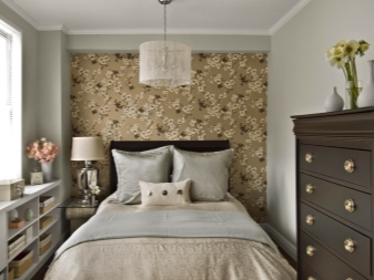 When choosing a wallpaper, pay attention to the options with a small pattern. In no case do not buy them with a large pattern for small bedrooms of 6 square meters. meters or even 11 square meters. m, because visually such wallpaper will “land” the ceiling, and also will draw all attention to itself, at the same time making the interior tasteless, and the room is visually even smaller than it is.