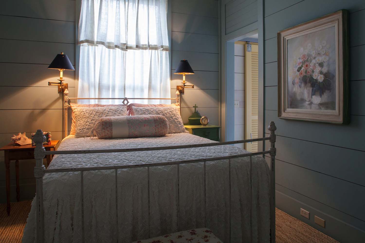 Additionally, you can install wall sconces. Shining vertically, they will visually pull the room up, while creating more light in the bedroom.