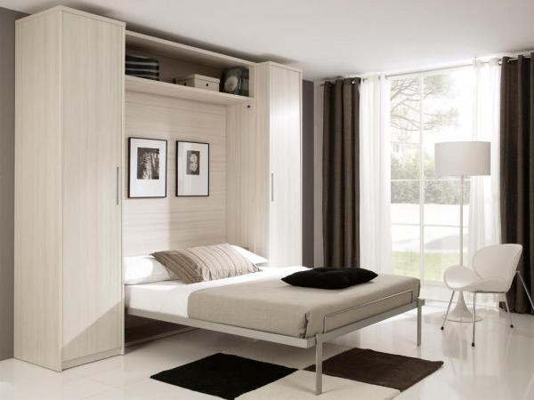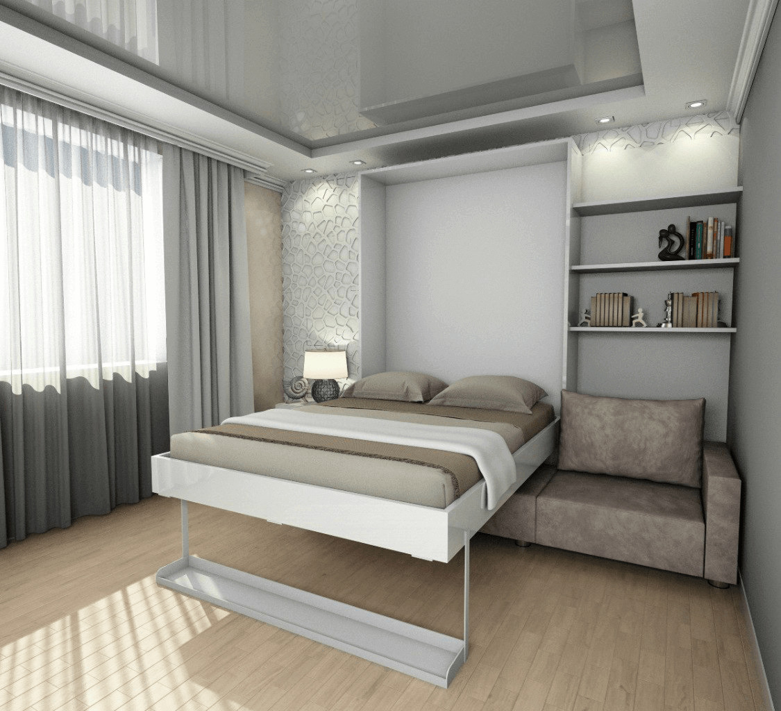 As an option, you can always use a similar type of folding bed. It allows you to free up more space, and the mechanism of its work is easy to use. This solution is most suitable for very small bedrooms, in which it is difficult to place something other than a bed.