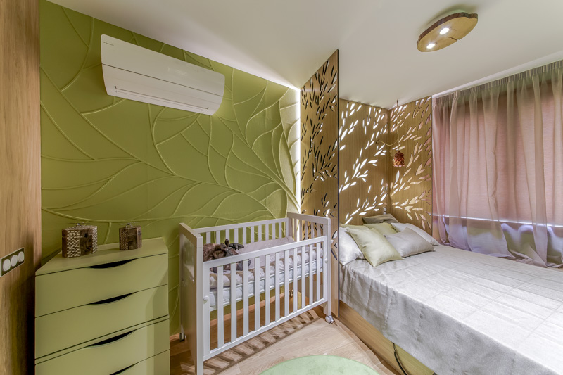 Eliminate the use of excess furniture and parts. Installing only the necessary functional items of furniture will help you to free up the precious area, and breathing in such a bedroom will become much easier.