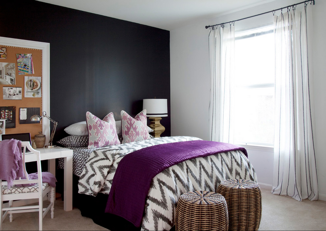 You can paint a niche for a bed in a dark color, and make the rest of the bedroom interior light. Thus, you will play on the contrast, and do not overload the room with a dark range of shades.