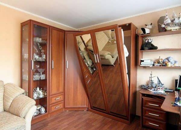 - Cabinet or chest of drawers. Both that, and another can be competently entered in an interior depending on the size and the form of the room. In particular, when choosing a cabinet, preference is given to coupe models up to the ceiling. This will help save space, as well as hide things from prying eyes. With such a closet, any room will look neat.