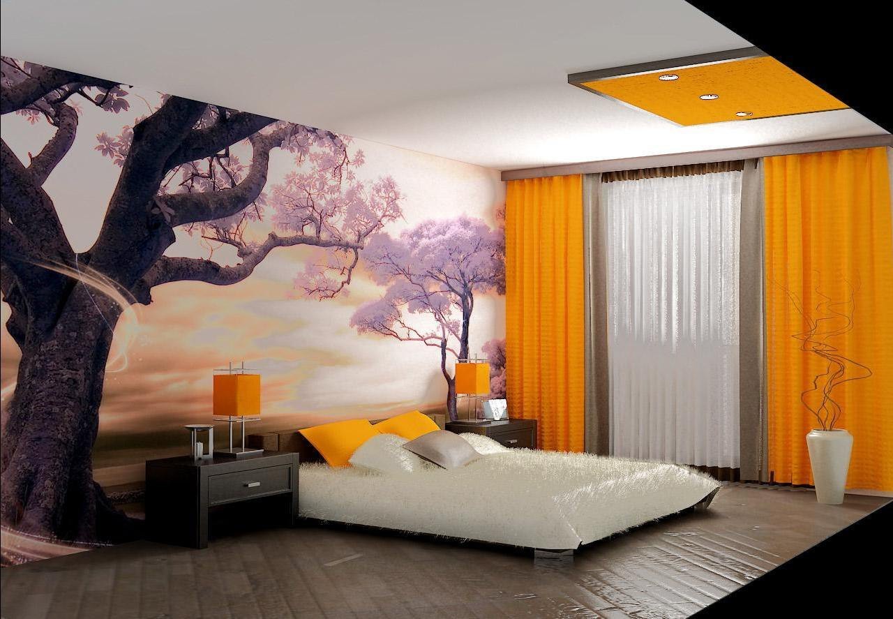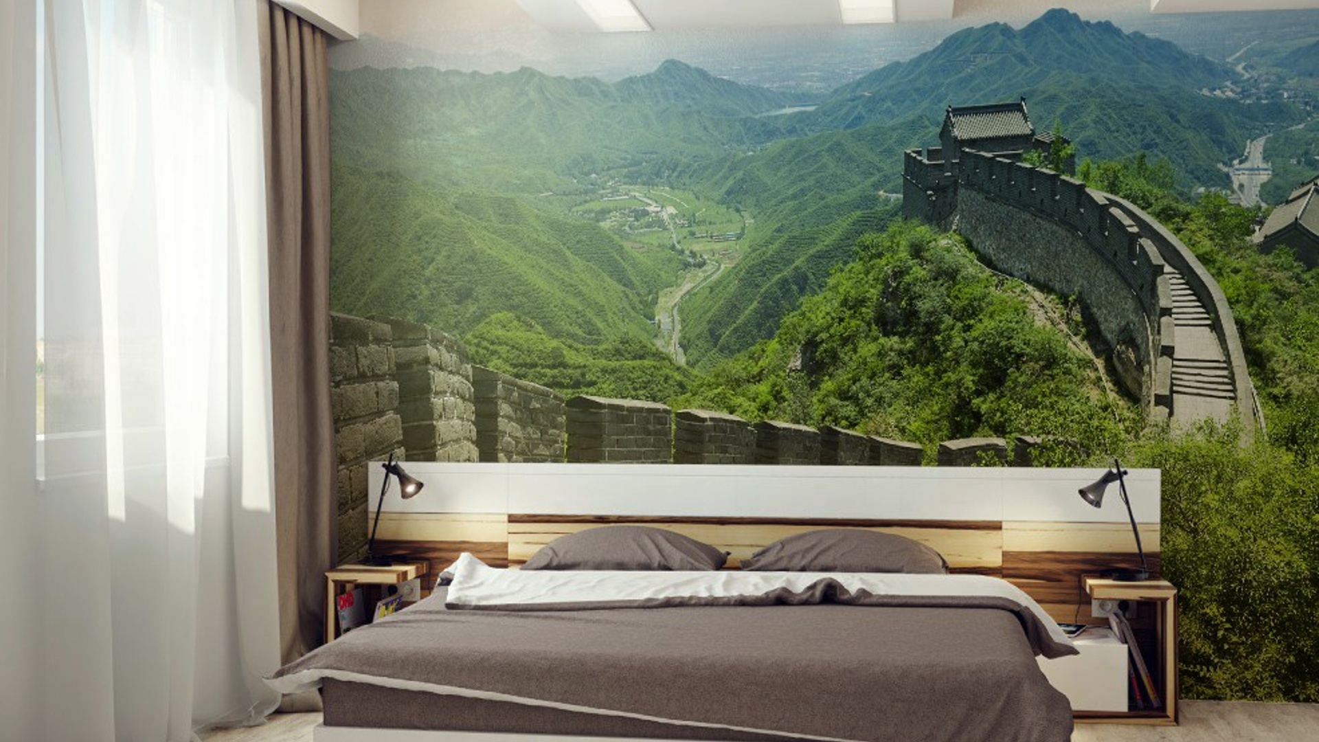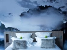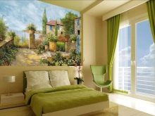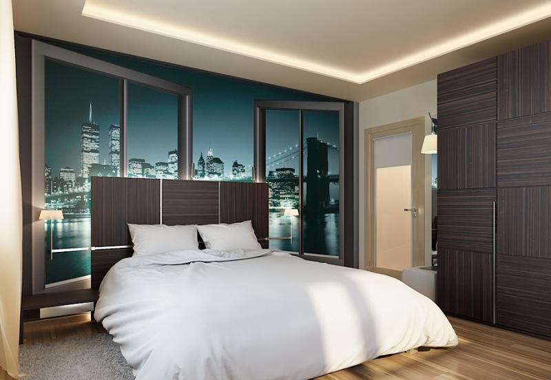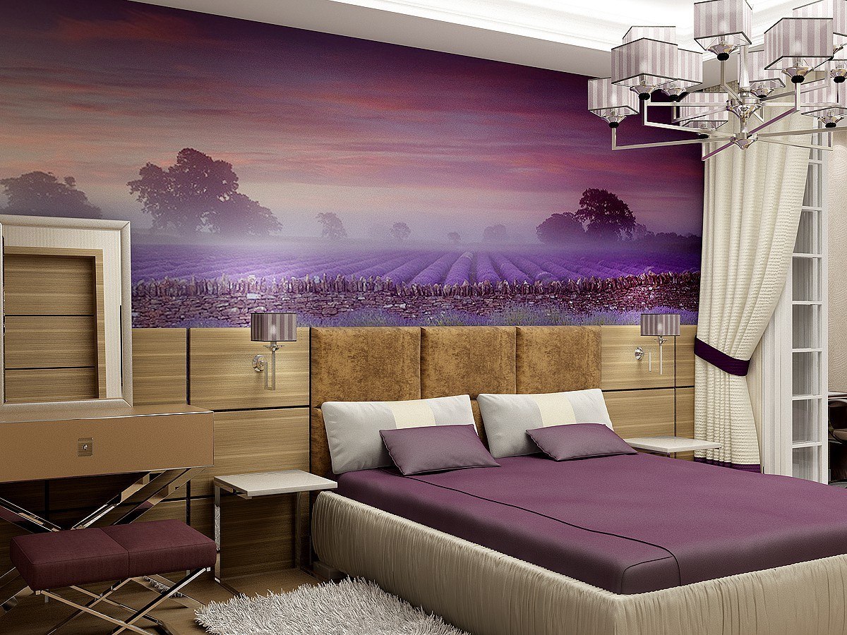 For the bedroom is not advised to choose a design with dynamics. A lively city, roads, skyscrapers are better moved to the living room, and in the bedroom to concentrate on something smoother that will create peace and tranquility.