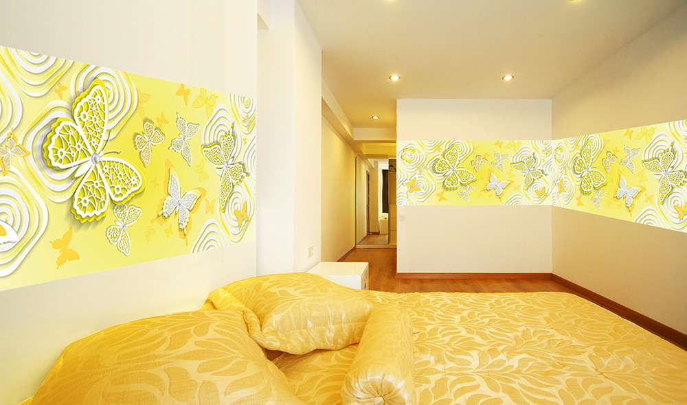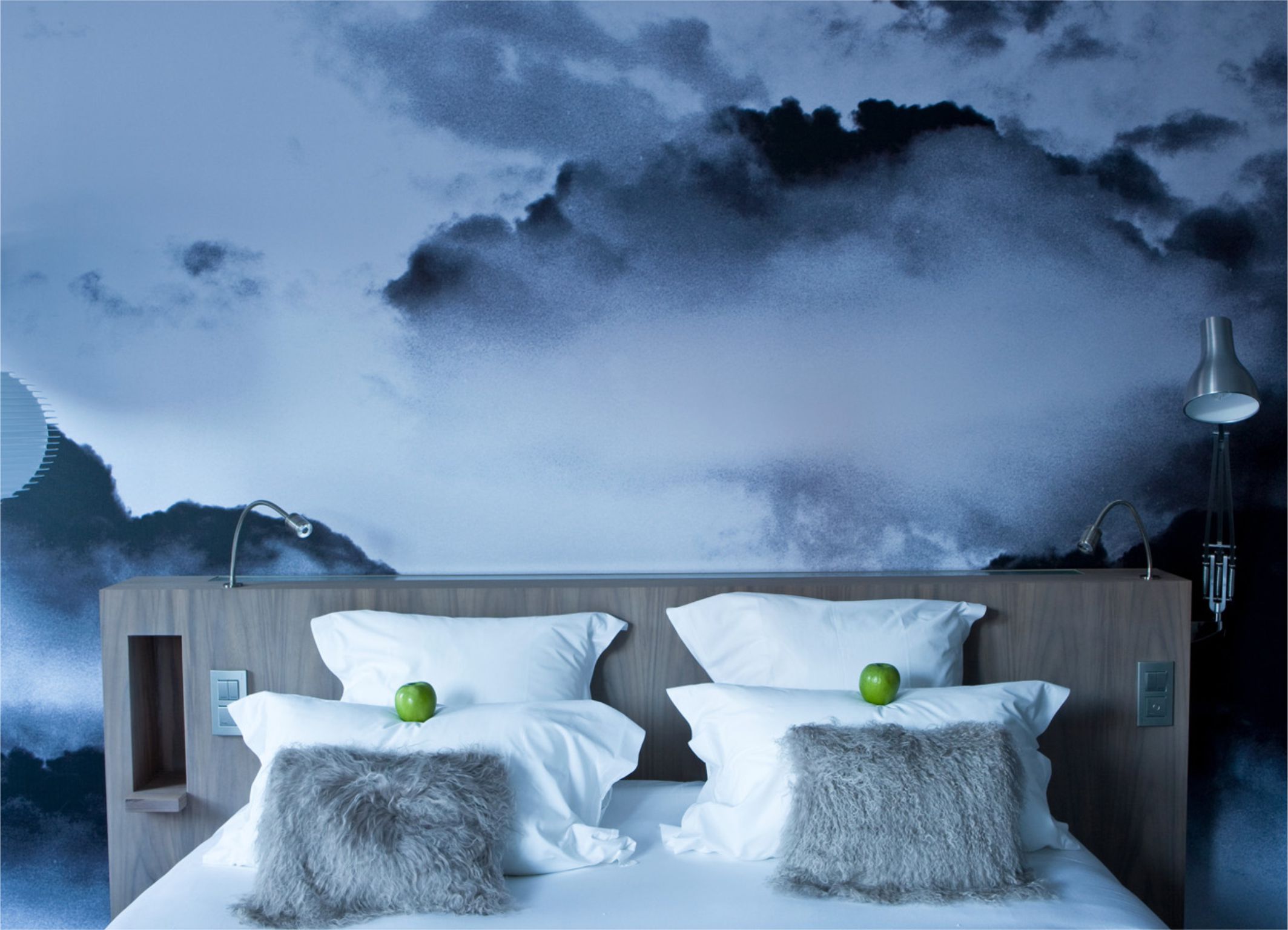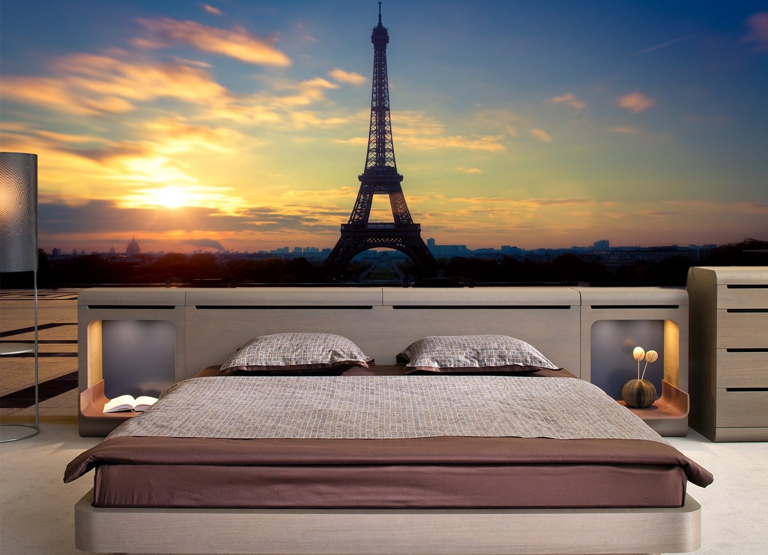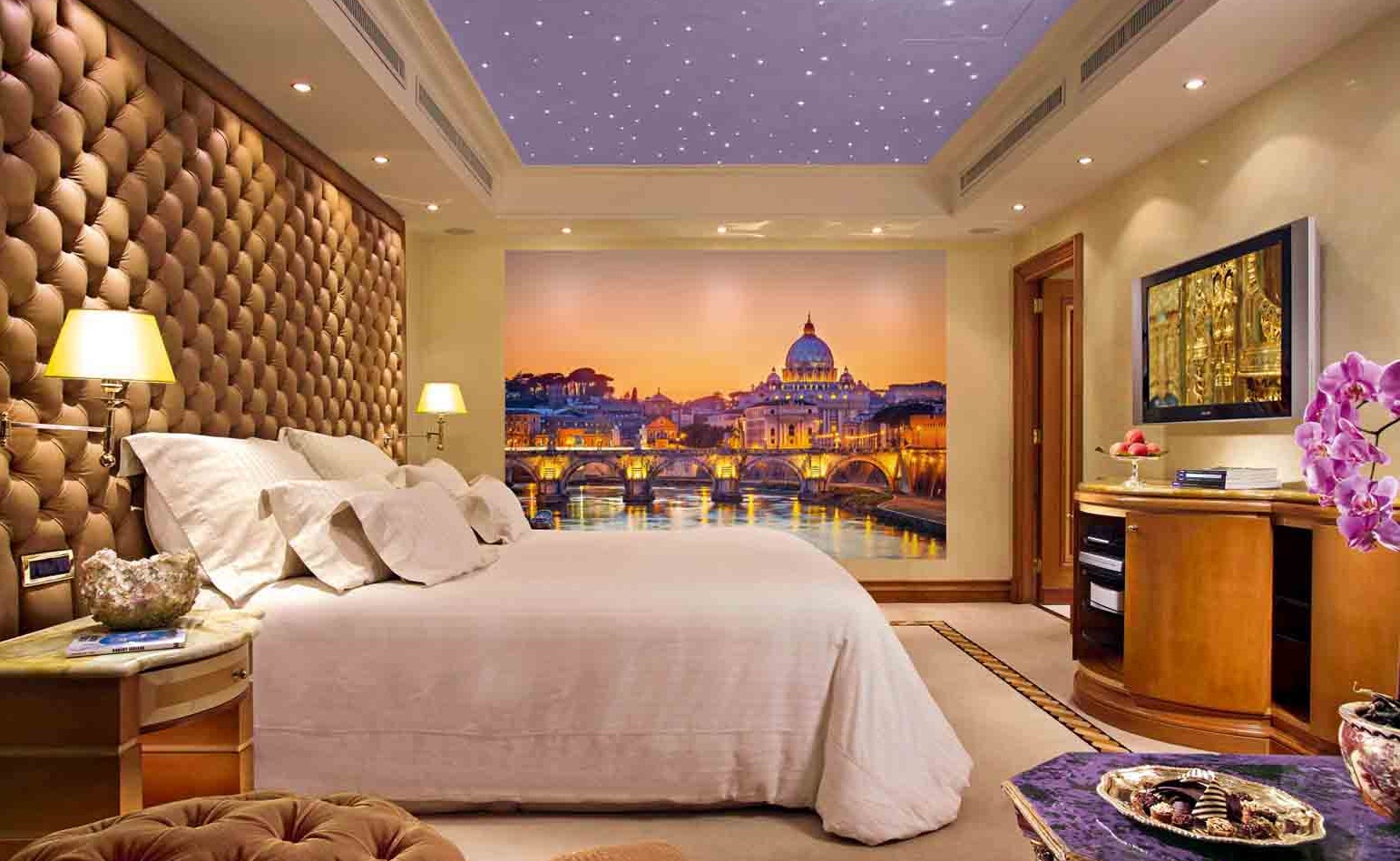 For the bedroom is not advised to choose a design with dynamics. A lively city, roads, skyscrapers are better moved to the living room, and in the bedroom to concentrate on something smoother that will create peace and tranquility.