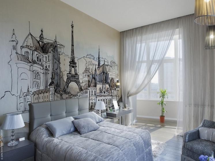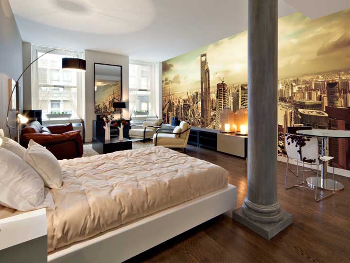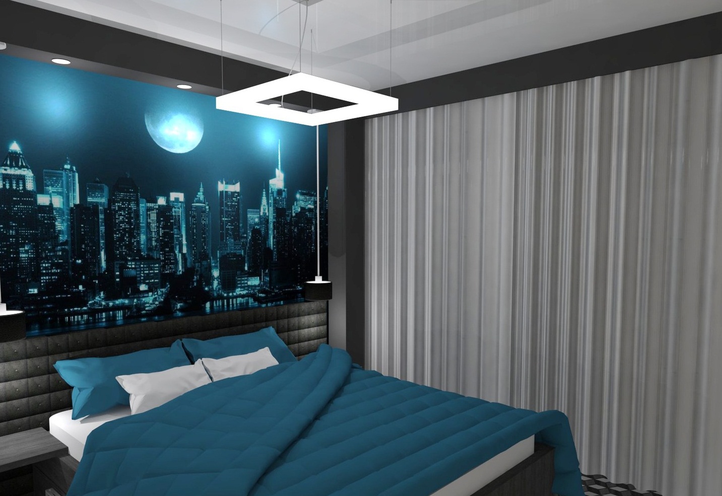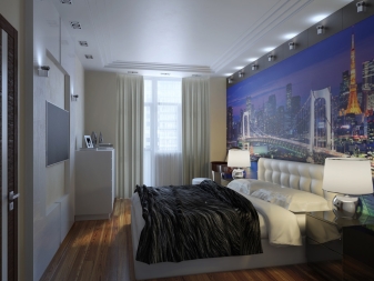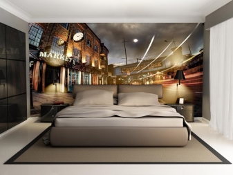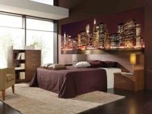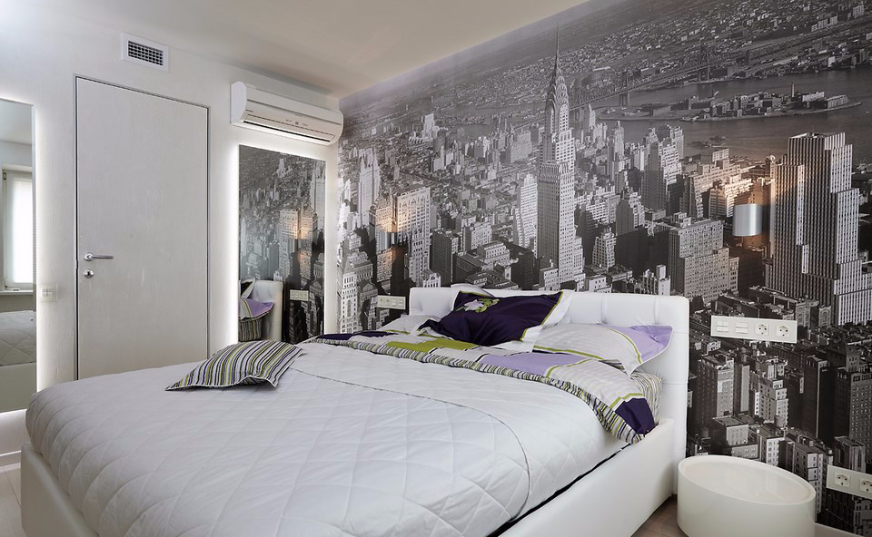 Comfortable and cozy atmosphere so necessary in the bedroom, is also able to create an image of the cityscape.