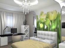 In modern style, you can design a bedroom for a teenager. Imitation of brickwork, reproductions of works by Andy Warhol, various abstract images - all this will fit into the interior of a teenage bedroom, and since it is often also a workplace, photo wallpapers will help to divide the room into zones.