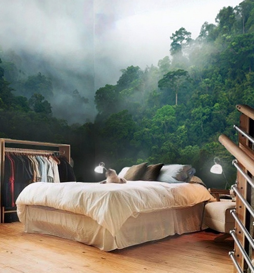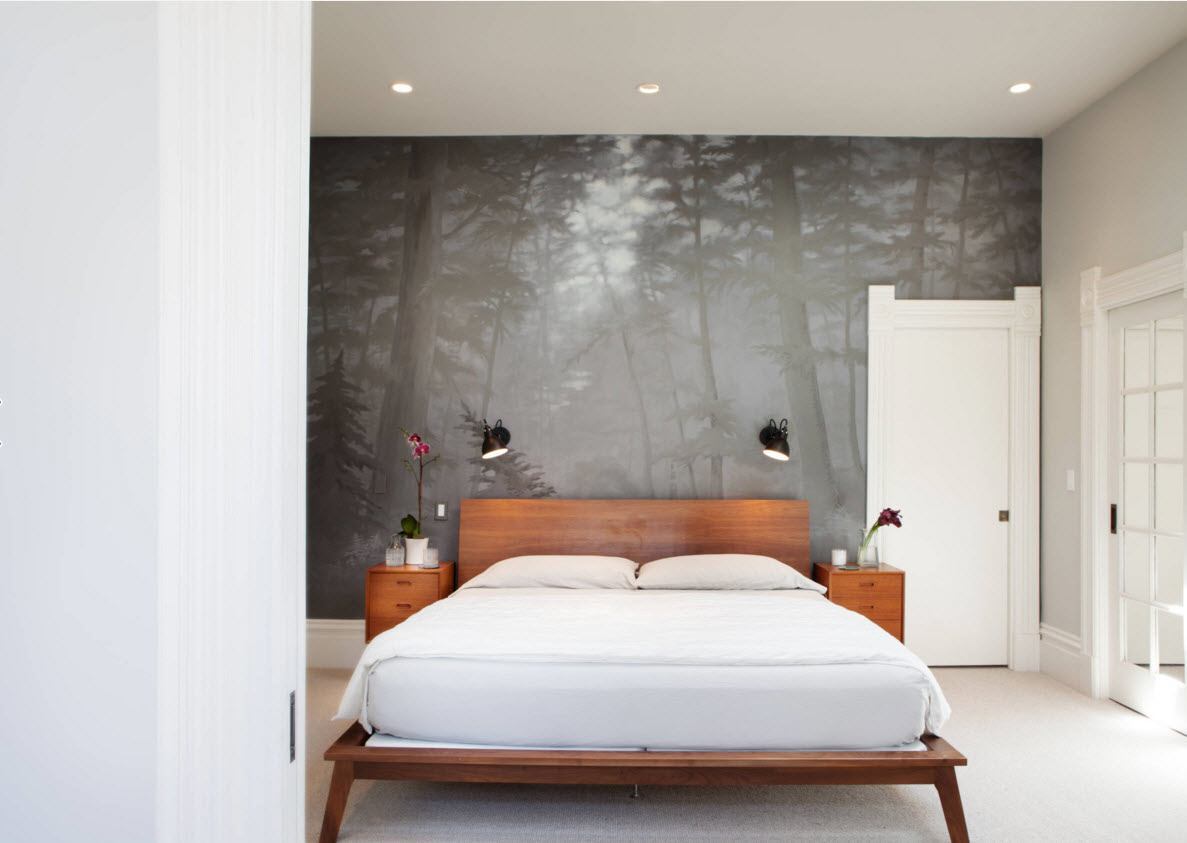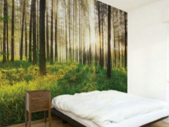 Favorable for the bedroom is the image of the forest. Such wallpapers are usually quite expressive, but always calm, emanating from them with consistency, a sense of stability.