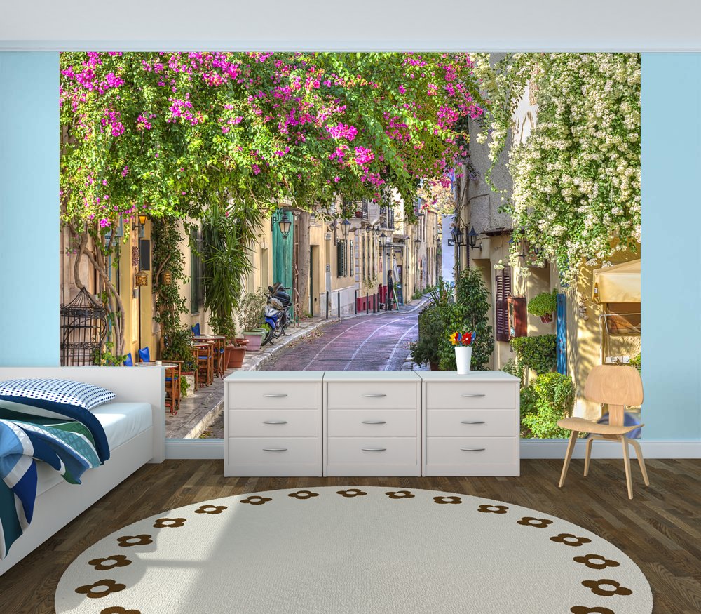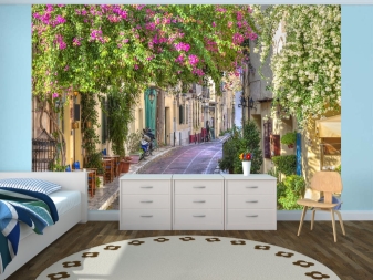 Visit the streets of Paris, wander through the streets of Rome is great, but if there is no such opportunity, you can arrange a virtual journey with the help of a properly selected image of photo wallpaper. And if to add this image with imitation of brickwork, then the interior will become even more refined and authentic.
