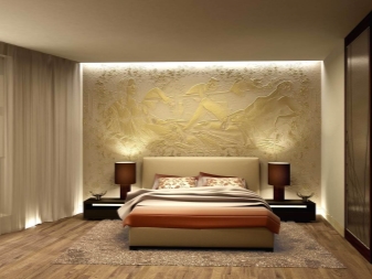 First of all, it is worth deciding what functions the canvas should perform. Will it be just a decorative element of the bedroom and will help expand the space or provide zoning.