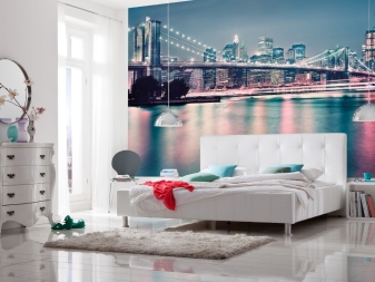 Another tip concerns the placement of furniture in rooms with photo wallpapers.It is not recommended to put furniture against the wall on which the drawing is located, this will overload the room. If the room is small and does not allow to leave one wall free of furniture, it is better to place the canvas above the bed, and in this case it will be possible to choose wallpaper that expands the space.