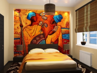 The size of the canvas also matters when choosing. So, for example, too small an image in a too large bedroom will look inappropriate, as, in fact, a huge banner on the whole wall in a small room, which instead of expanding the room, on the contrary, will reduce its size. Correctly to increase the room will help the wallpaper, pasted at the head of the bed.