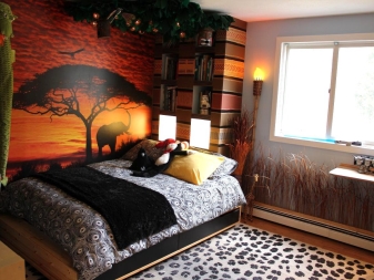 Ethno stylistic direction is not the easiest solution, but compliance with all design rules will allow you to become the owner of a chic interior. Photowall-paper with hieroglyphs, ethnic patterns, the image of animals, tribes, trees will help to add design.