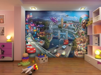 For a nursery it is worth choosing bright and cheerful colors. For the boy, of course, the ideal option would be the image of cars, airplanes and other hobbies of the child, for a girl, wallpapers with the image of favorite heroes of cartoons will work well.
