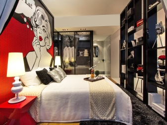 Gaining popularity in interior design style pop art will allow the use of non-standard solutions. For example, in addition to reproductions of famous pop art works, you can use beautiful images of people, stylized as an interior. Quite interesting and unusual in the interior look lips.The image of female lips of the correct form with red lipstick and white teeth is in high demand today, so you can call it a trend. But the swans, who were so popular in the 90s, go and leave a niche for other interesting options.