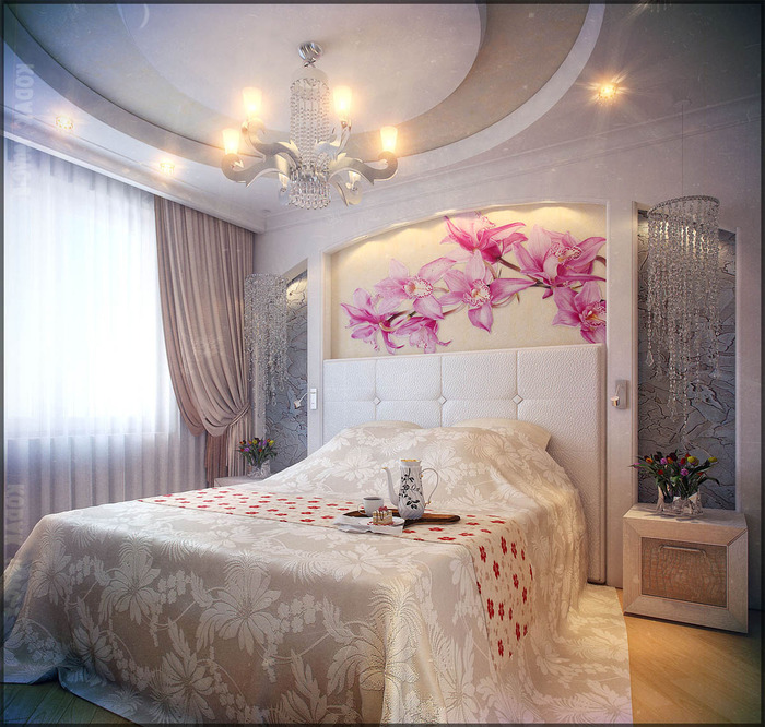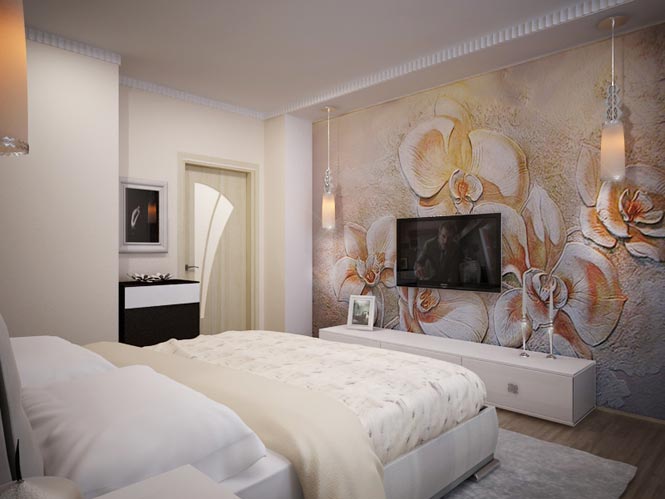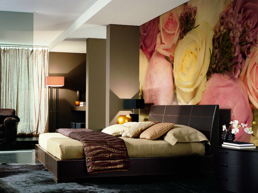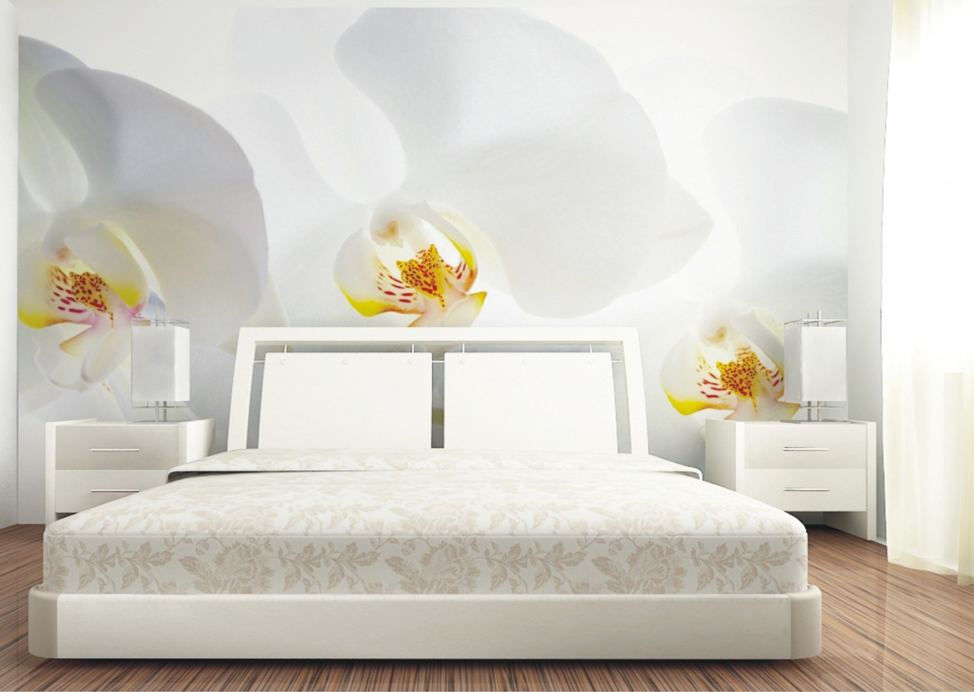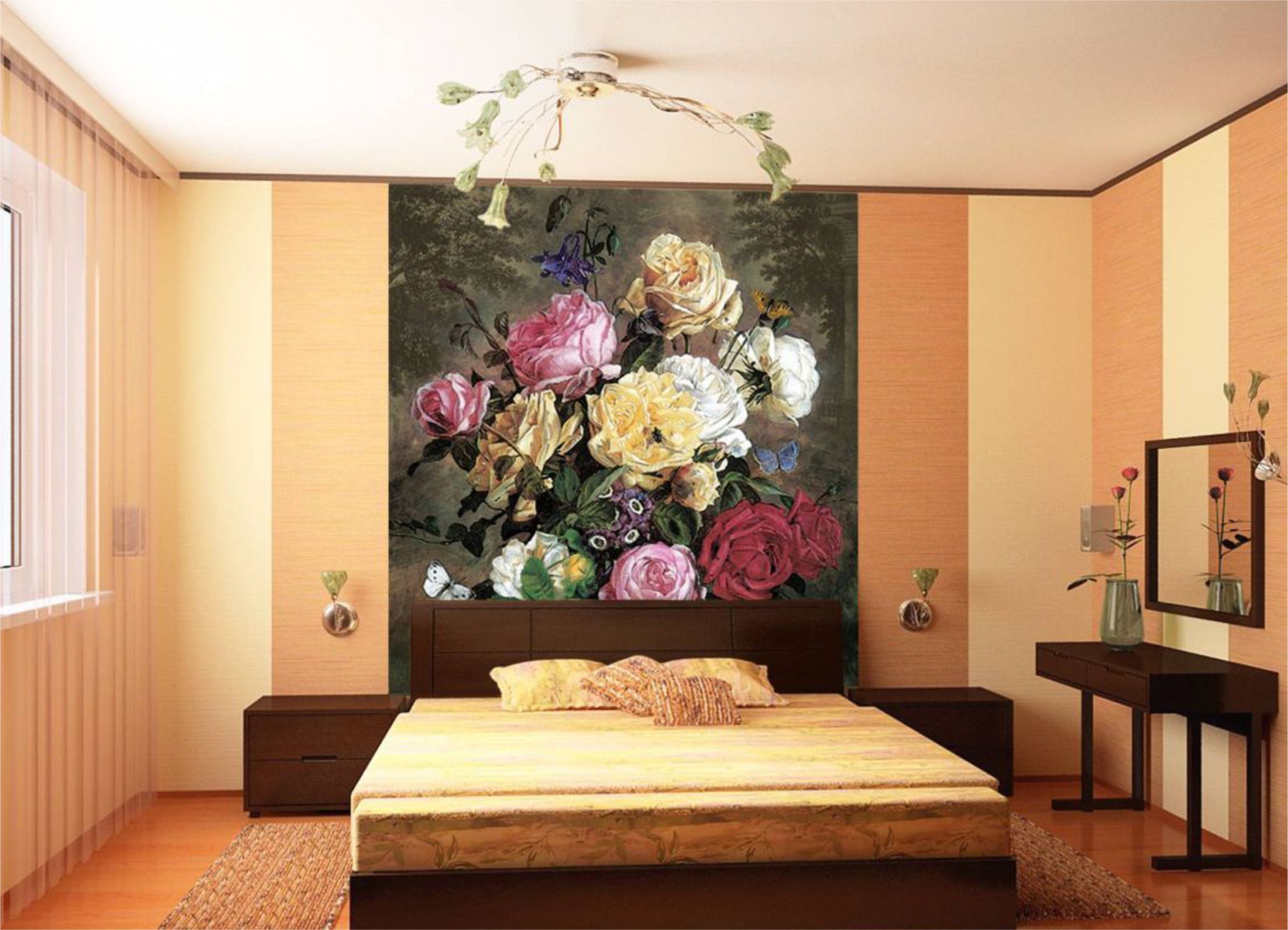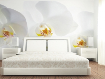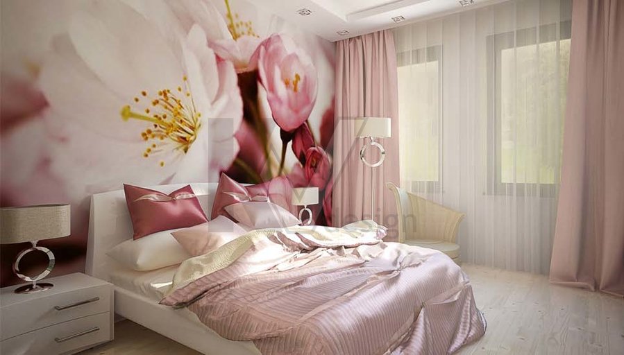 Floral motifs - one of the most favorite options for consumers of images. The most romantic and delicate interiors are accompanied by exactly the image of flowers. As for the style direction of the bedroom, the image of flowers can be chosen for almost any interior design, be it a classic interior or minimalism, a children's room or a bedroom of a young girl.In large rooms, wallpapers look great with images of flowers shot using macro shots. When looking at dewdrops on petals or streaked on leaves, there is a special charm that creates a very special atmosphere in the bedroom.